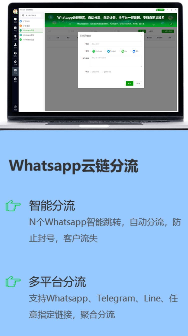 N个WhatsApp智能跳转,自动分流,防止封号,客户流失