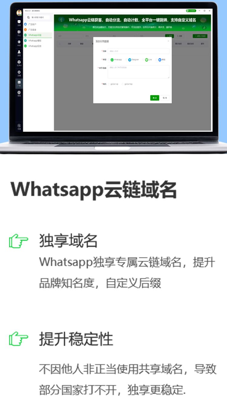 WhatsApp独享专属云链域名,提升品牌知名度,自定义后缀