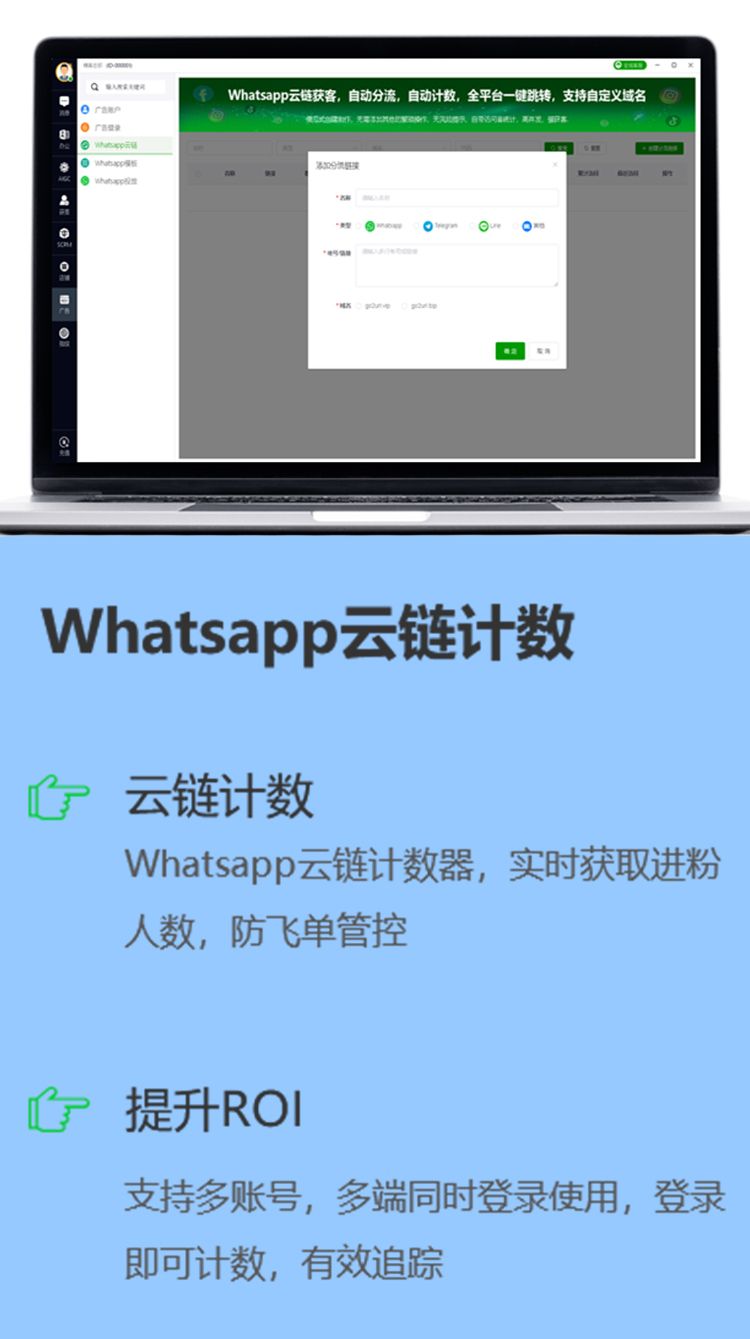 WhatsApp云链计数器,实时获取进粉人数,防飞单管控